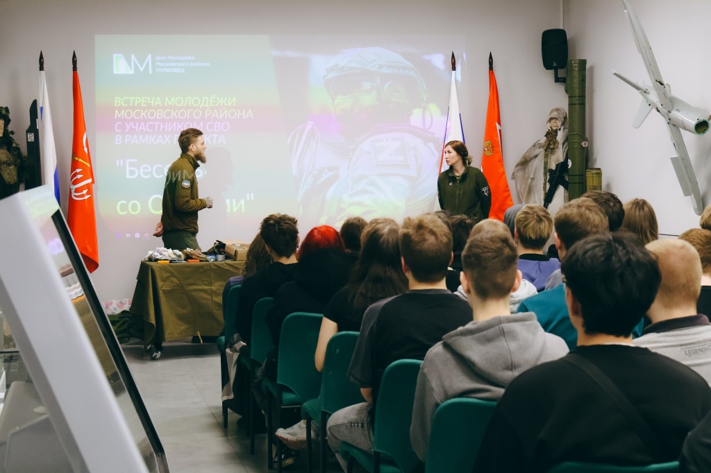 25 марта студенты группы 2-АУ-7 в сопровождении преподавателя Радченко В.Б. приняли участие во встрече молодежи Московского района с участниками Специальной военной операции, которая проходила в рамках проекта «Беседы со СВОими» в Центре патриотического воспитания СПб ГБУ «Дом молодежи «Пулковец».